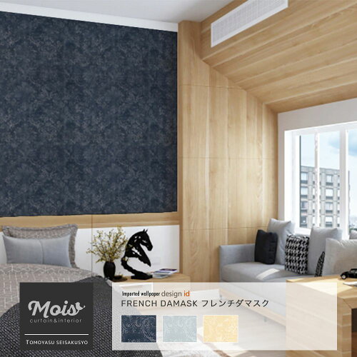 《即日出荷》 壁紙 クロス 輸入クロス design id フレンチダマスク [ ダマスクフレンチ アンティーク ベージュ ネイビー グレー 不織布 上品 豪華 フリース 貼りやすい ロール巻き あす楽 おしゃれ 海外インテリア インポート リビング ダイニング デザイン 寝室 ]